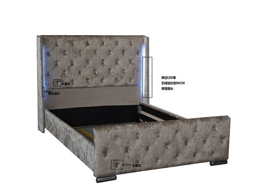 Customized Crushed Velvet Fabric Upholstered Platform Bed With LED Headboard